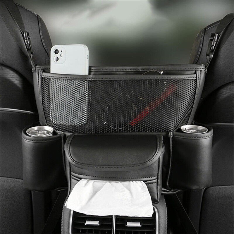حقيبة تخزين مركزية جلدية للمقعد الأمامي للسيارة عملي وعالي الجودة، مثالي للاستخدام اليومي ✨👌