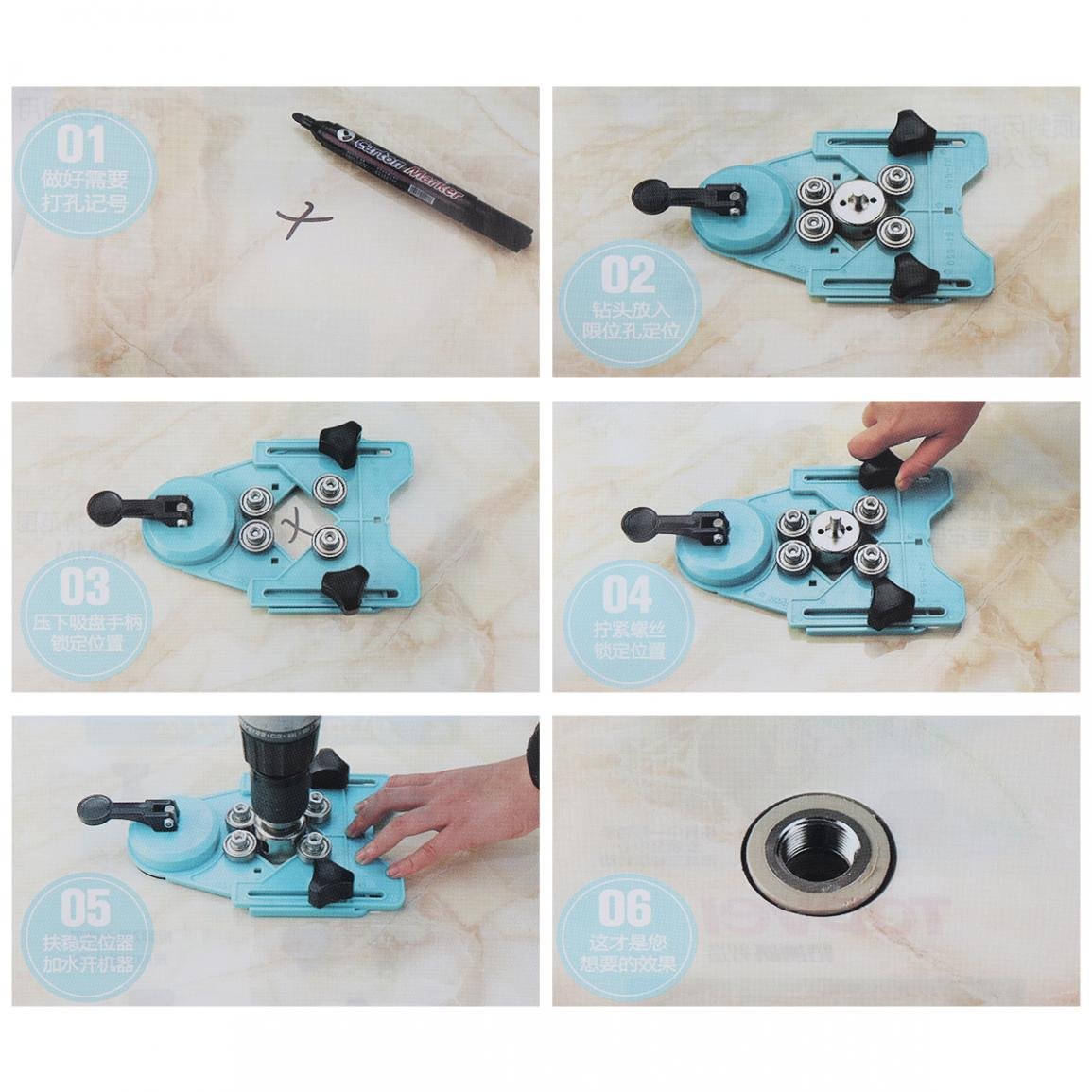 Caractéristiques: Ventouse en caoutchouc naturel, solide et durable. Les plastiques techniques de haute qualité sont suffisamment épais pour durer. Les roulements fermés de haute qualité sont durables. Utilisé pour positionner le verre, les carreaux de céramique et le foret lors du forage. Lors de l’utilisation de plus d’effets d’eau, des deux côtés du positionneur, deux drain respectivement. Design sophistiqué peut être positionné sur la tuile lisse avec une ventouse. La longueur d’ouverture des plaques réglables est de 4-83mm, assez grande pour mettre dans toutes les tailles de scies cloche. La base d’aspiration a une bonne résistance pour maintenir le gabarit de centrage serré et bien sur une surface lisse. Perçage plus précis, facile à stocker et peut être utilisé plusieurs fois. Il est facile de glisser en forant des trous sur des matériaux lisses, qui peuvent causer des erreurs de perçage ou des blessures, ce positionneur peut effectivement empêcher le glissement en forant des trous. Spécifications: Matériau: Plastique Couleur: Bleu Plage de serrage de positionnement: 4-83mm Modèle: positionneur de poinçon/positionneur de poinçon de tuile + ouvreur de trou en verre de 8 pièces/positionneur de poinçon de tuile + ouvreur de trou en verre de 11 pièces (facultatif)