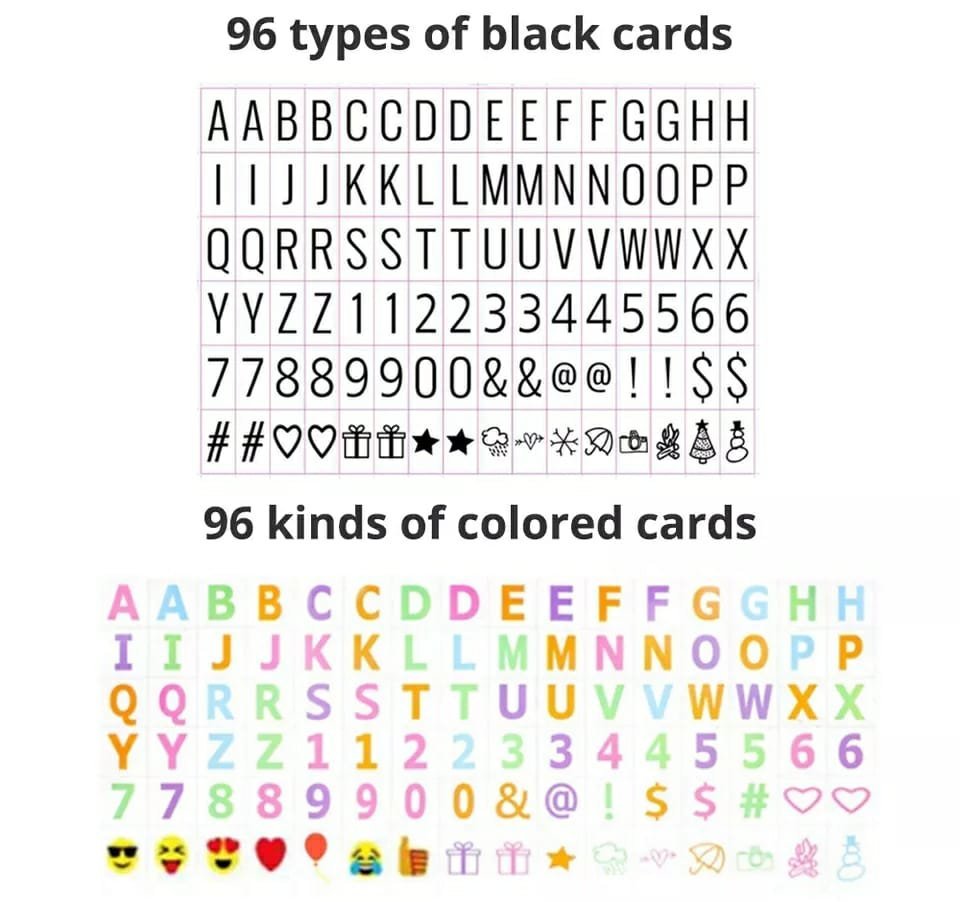 - عدد الأحرف والرموز: 96 قطعة (لون أسود)