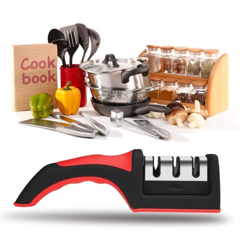 مبراة سكاكين ثلاثية المراحل مصنوعة من الفولاذ الماسي عملي وعالي الجودة، مثالي للاستخدام اليومي ✨👌