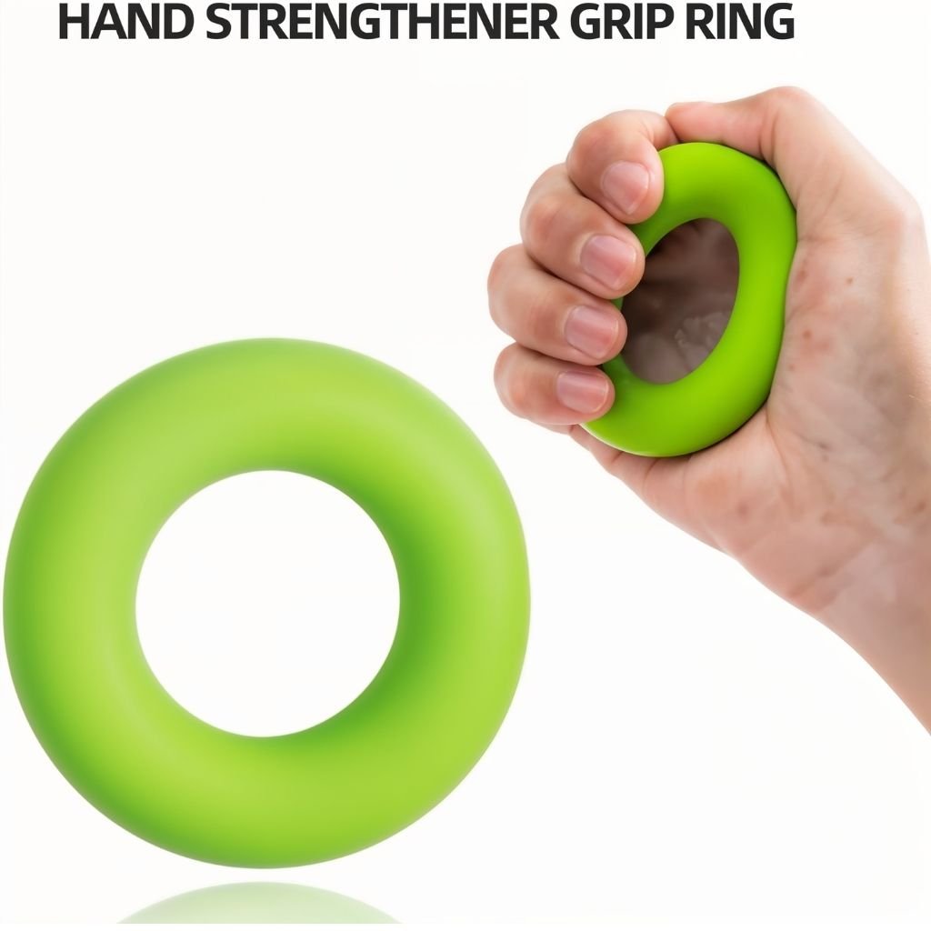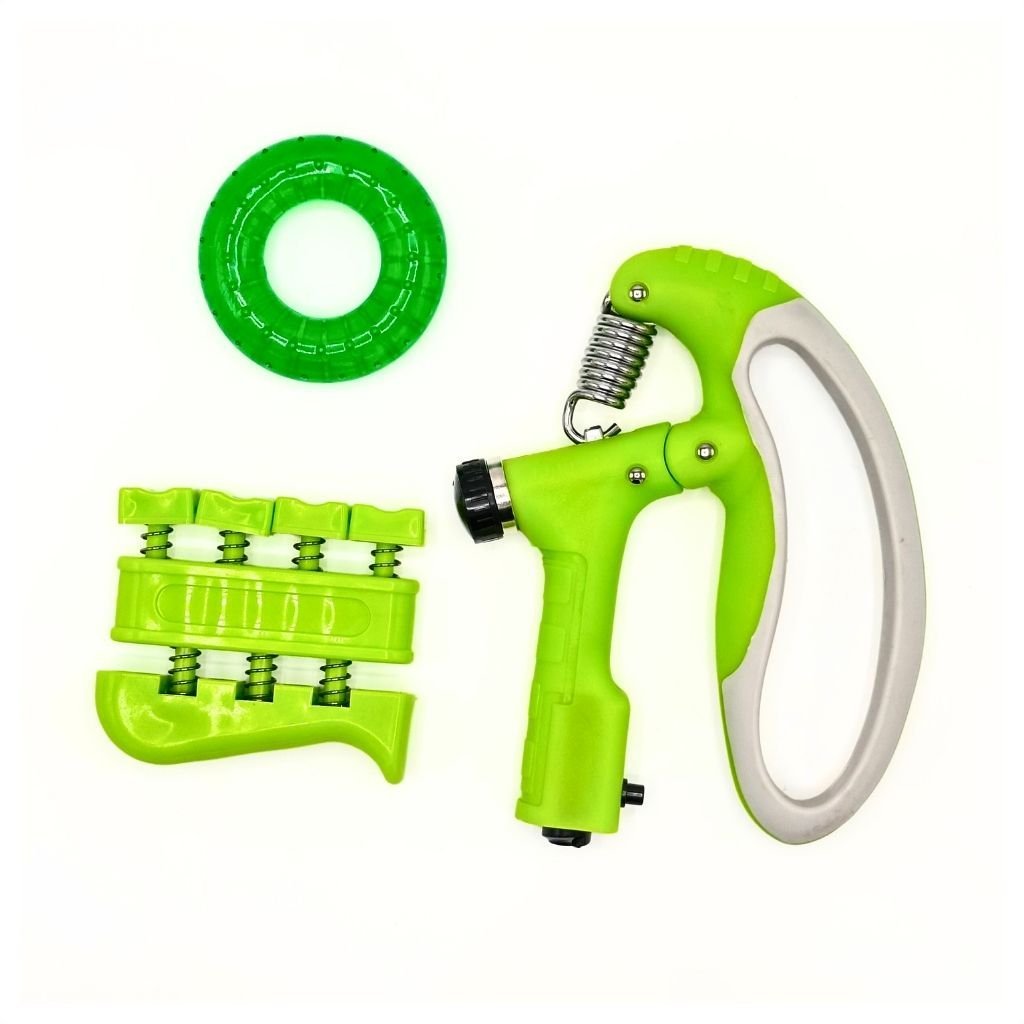 - 5 قطع تشمل: مقبض تقوية، موسع أصابع، حلقة قبض، كرة مضادة للتوتر.