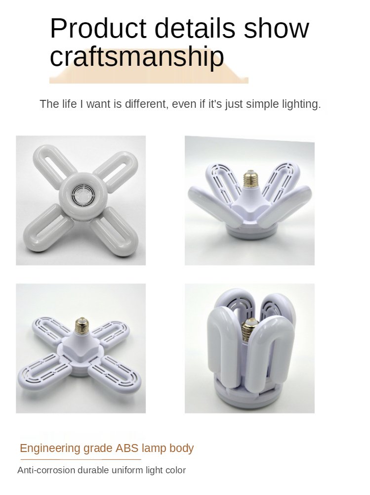Installez l’ampoule E27 dans la prise de la pièce, utilisez la télécommande pour l’allumer et ajustez la couleur que vous aimez selon les instructions, et passez à la lumière blanche lorsque la gradation n’est pas nécessaire Connectez le téléphone mobile Bluetooth, vous pouvez lire de la musique à n’importe quel endroit Description: Puissance: 48W Caractéristiques: 4 feuilles Couleur: RGB/blanc Tension d’entrée: 85-265 (V) Flux lumineux: 5000 (lm) Angle de faisceau: 180 (degrés) Indice de rendu des couleurs: 80-90 Niveau de Protection: ip54 Matériau du corps de la lampe: plastique Spécifications du support de lampe: E27 Caractéristique 1: prise en charge de Bluetooth 5.0 Caractéristique 2: couleur de la lumière réglable, rvb/blanc Caractéristique 3: gradation de la télécommande, possibilité de changer de mode d’éclairage Article 4:Avec haut-parleur, vous pouvez jouer de la musique Emballage inclus: 1 x lampe RGB 1 * télécommande (sans batterie) 1 * manuel d’utilisation