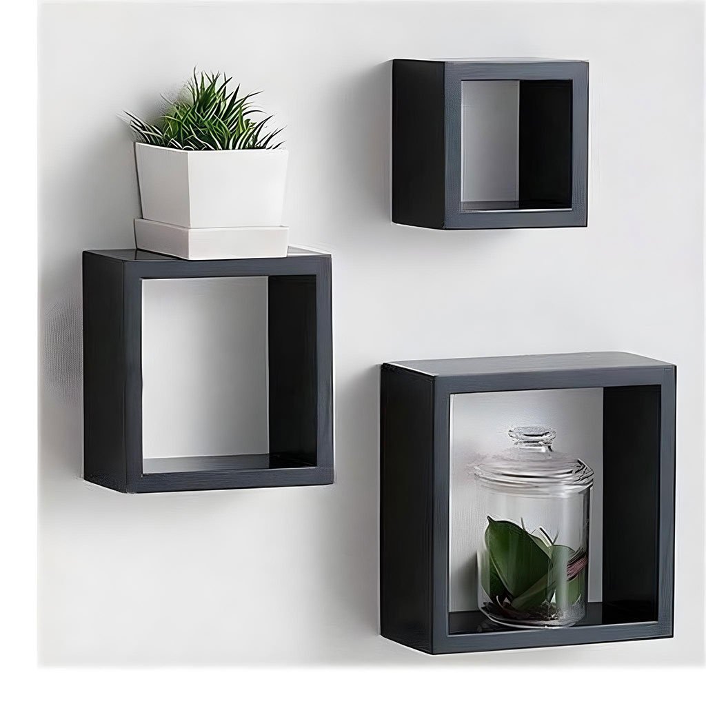 3 أرفف جدارية خشبية مربعة عملي وعالي الجودة، مثالي للاستخدام اليومي ✨👌